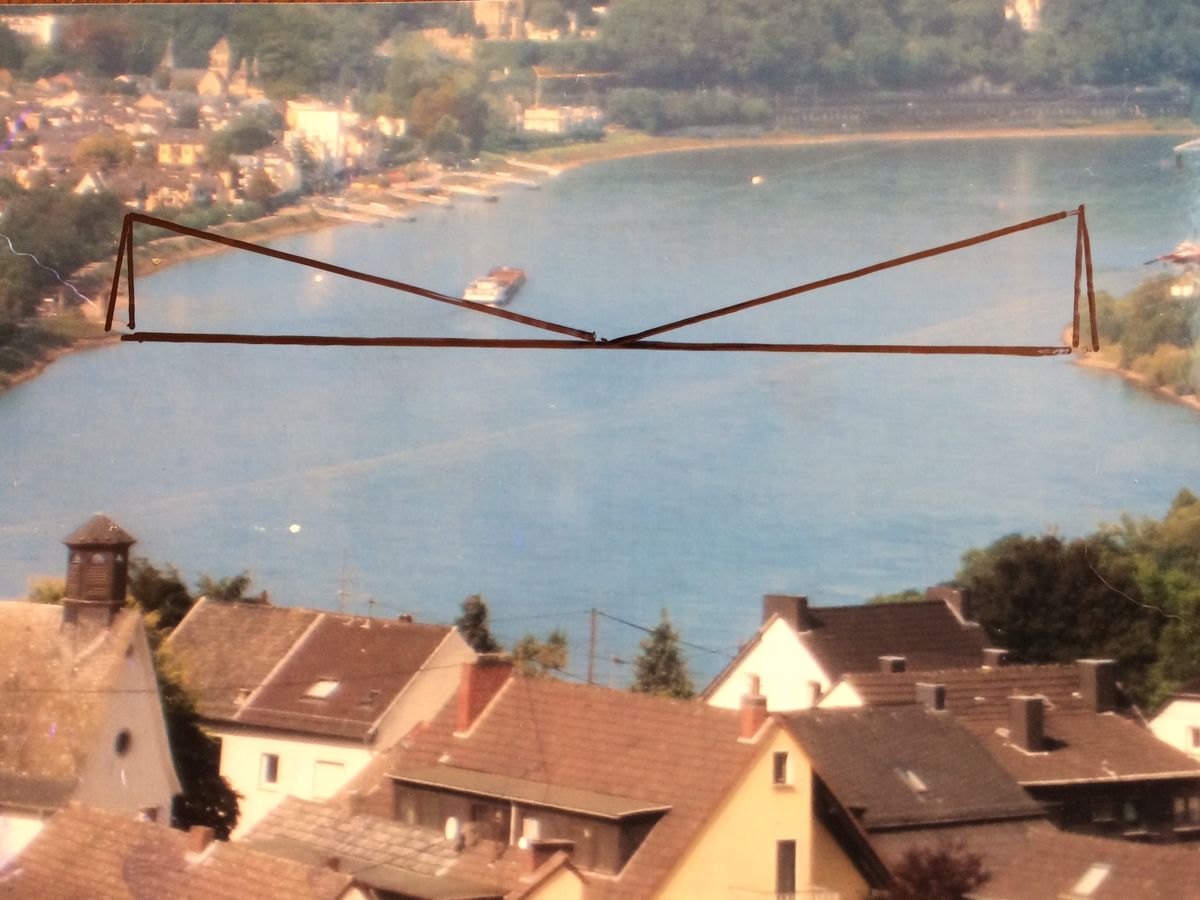 So könnte sie aussehen, die Brücke über den Rhein (Bild/Zeichnung von Gerhard Meickl), nach dem Antrag von dem Mitglied des Bundestages, Erwin Rüddel (CDU), an den Bundesverkehrsminister Dobrinth. Das möchten wir, die SPD-Fraktion des Gemeinderates Ockenfels, nicht und wurden auch nicht dazu gefragt. Wir befürchten mit dem Anblick der Brücke eine Wertminderung unserer Grundstücke und Häuser in Ockenfels.